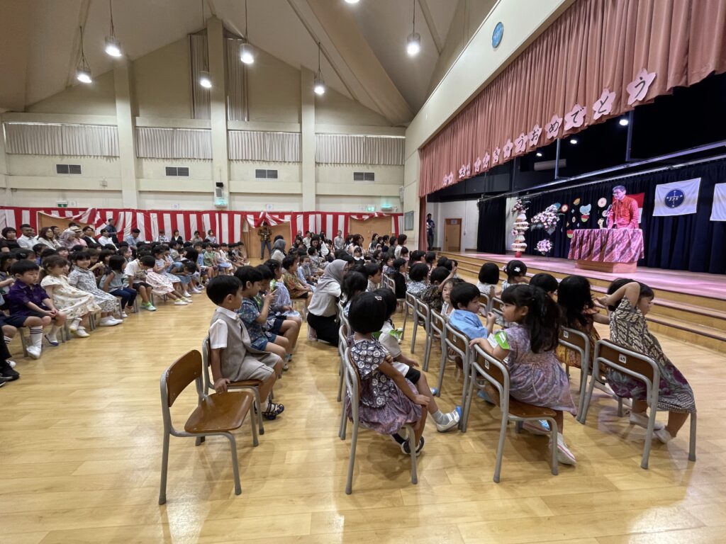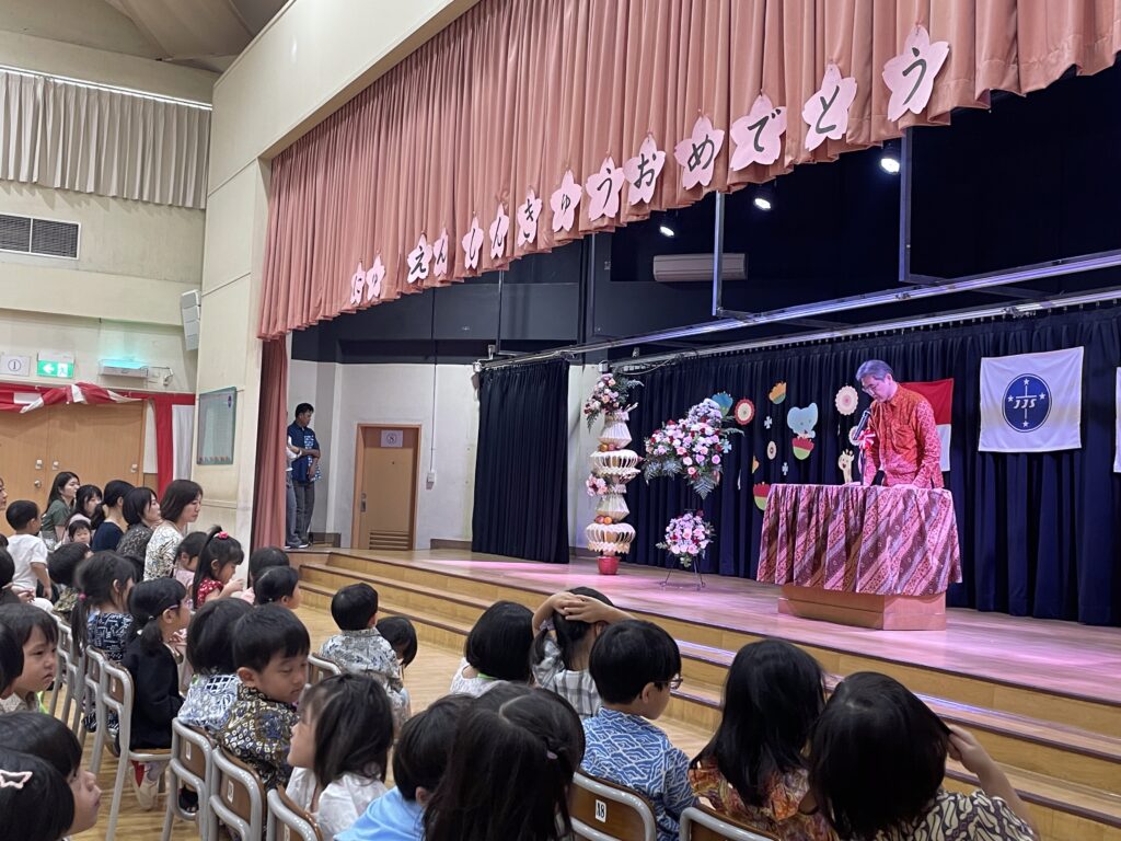 38名の新入園児を迎え、入園式・進級式を行いました。ちょっぴり緊張した面持ちでホールに入りましたが、先生たちの楽しい寸劇や来賓のみなさまのお話を聞くとすぐに顔が柔らかくなりました。今年度は在園児を含め119名でのスタートです。